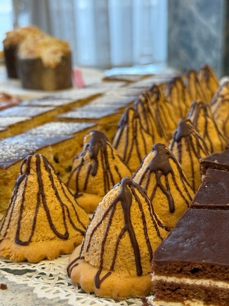 Ассортимент кондитерского цеха включает сейчас более 30 наименований кондитерских и 20 хлебобулочных изделий. Продукция изготавливается в основном для рационов бортового питания пассажиров экономкласса, бизнес-класса и экипажа. На весенне-летний период 2025-го в рационах бортового питания национального перевозчика "Белавиа" все покупные хлебобулочные и кондитерские изделия заменены на качественную продукцию собственного производства. Пирожные кондитерского цеха можно купить также во всех торговых объектах и точках общественного питания службы "Кэтеринг" на территории аэровокзального комплекса.