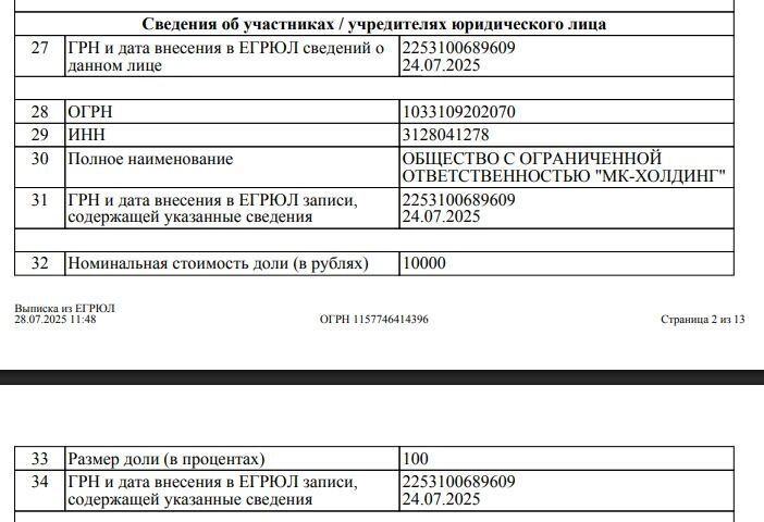 Согласно данным из выписки ЕГРЮЛ, информация о владельце обновилась ещё 24 июля.