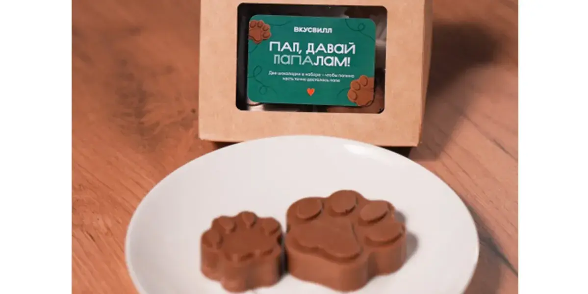В преддверии Дня отца сеть магазинов «ВкусВилл» представила лимитированную коллекцию шоколадных наборов «Пап, давай папалам». В набор входят две шоколадные плитки разного размера: одна предназначена для отца, вторая — для ребенка.