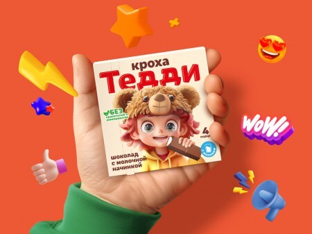 Коммуникационное агентство VOZDUH разработало дизайн-концепцию упаковки для молочного шоколада в порциях для бренда "Кроха Тедди" наподобие Kinder-шоколад. Дизайн нового шоколада должен был привлекать внимание и родителей, и детей младшего возраста и подростков.