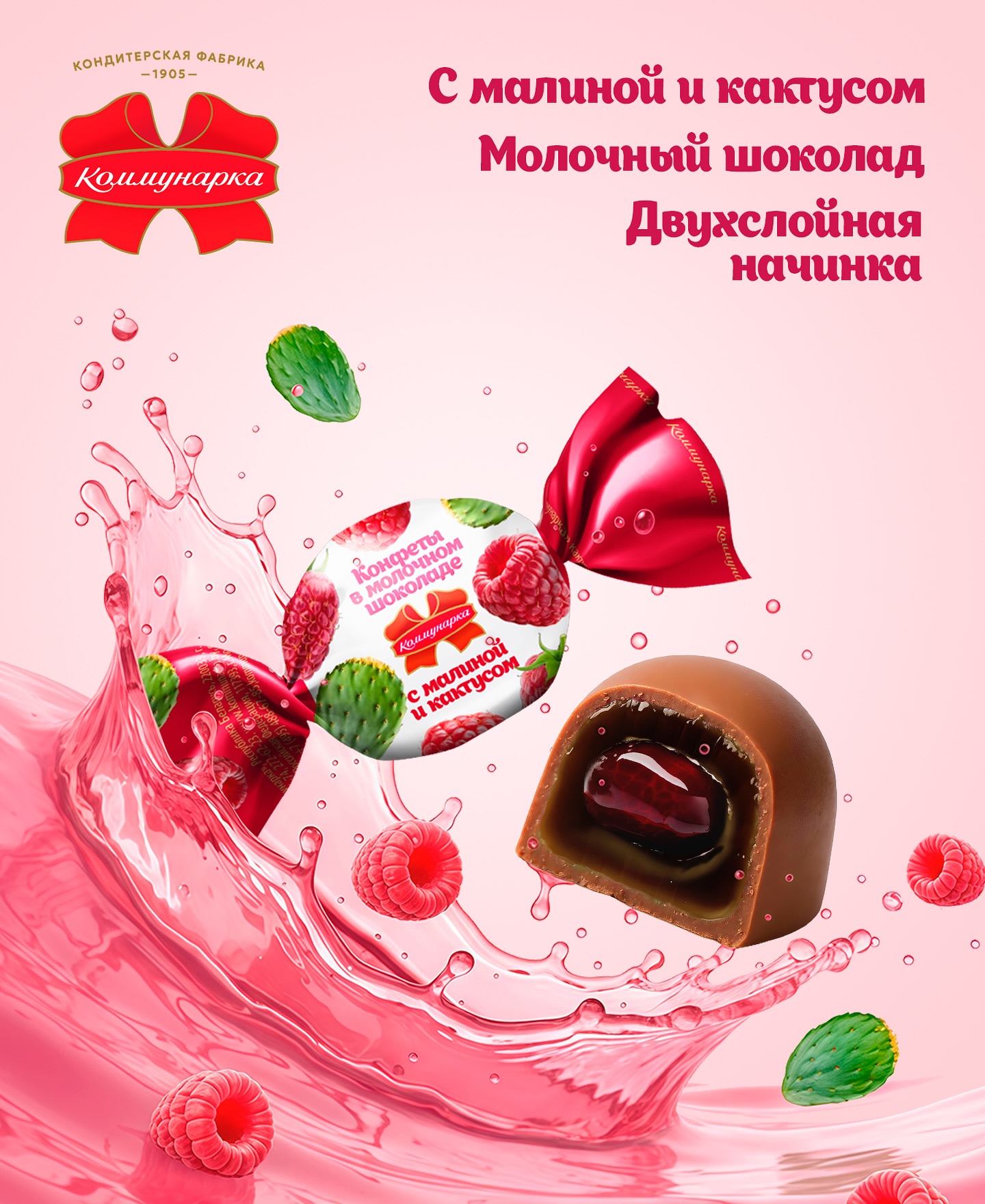 Конфеты в молочном шоколаде со вкусом малины и кактуса появились в фирменных магазинах "Коммунарки".