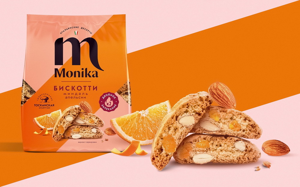 В сотрудничестве с клиентом дизайнеры провели ребрендинг, выбрав для десерта новое, благозвучное название – «Бискотти». Оно не только несет в себе итальянский шарм, но и ясно передает суть продукта.